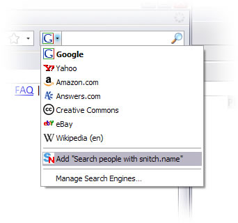Plugin You can search with snitch.name directly from your browser's search box using the OpenSearch specification